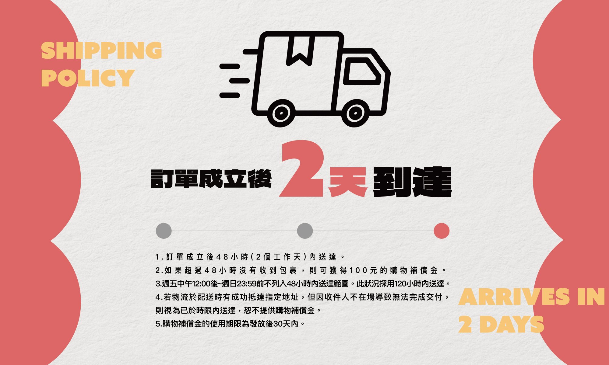 - 若節慶假日遇訂單較多或不可抗力天災因素,則可能延遲出貨