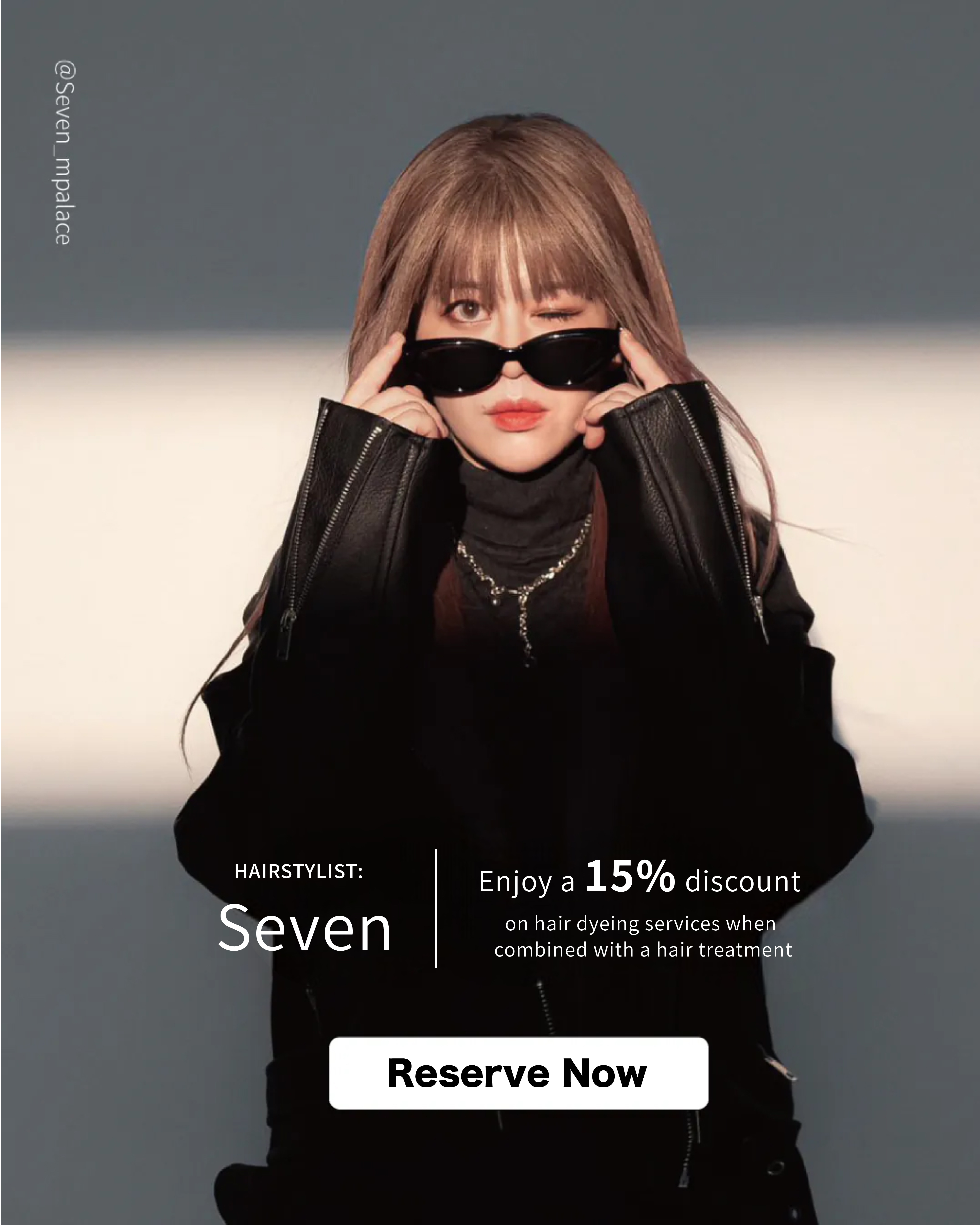 Having observed countless hair types, Seven has honed the ability to customize designs based on each client's needs. She tailors the strength of the chemical treatments according to the client's face shape, hair volume, and preferred style, preserving the hair's natural elasticity. This allows her to adjust the hair's volume or smoothness during the styling process, giving the hair a more refined appearance while maintaining a healthy, hydrated look. Want your hair to feel smoother? Join Seven's Line to make an appointment and enjoy an 15% off discount on hair dye and treatment services.