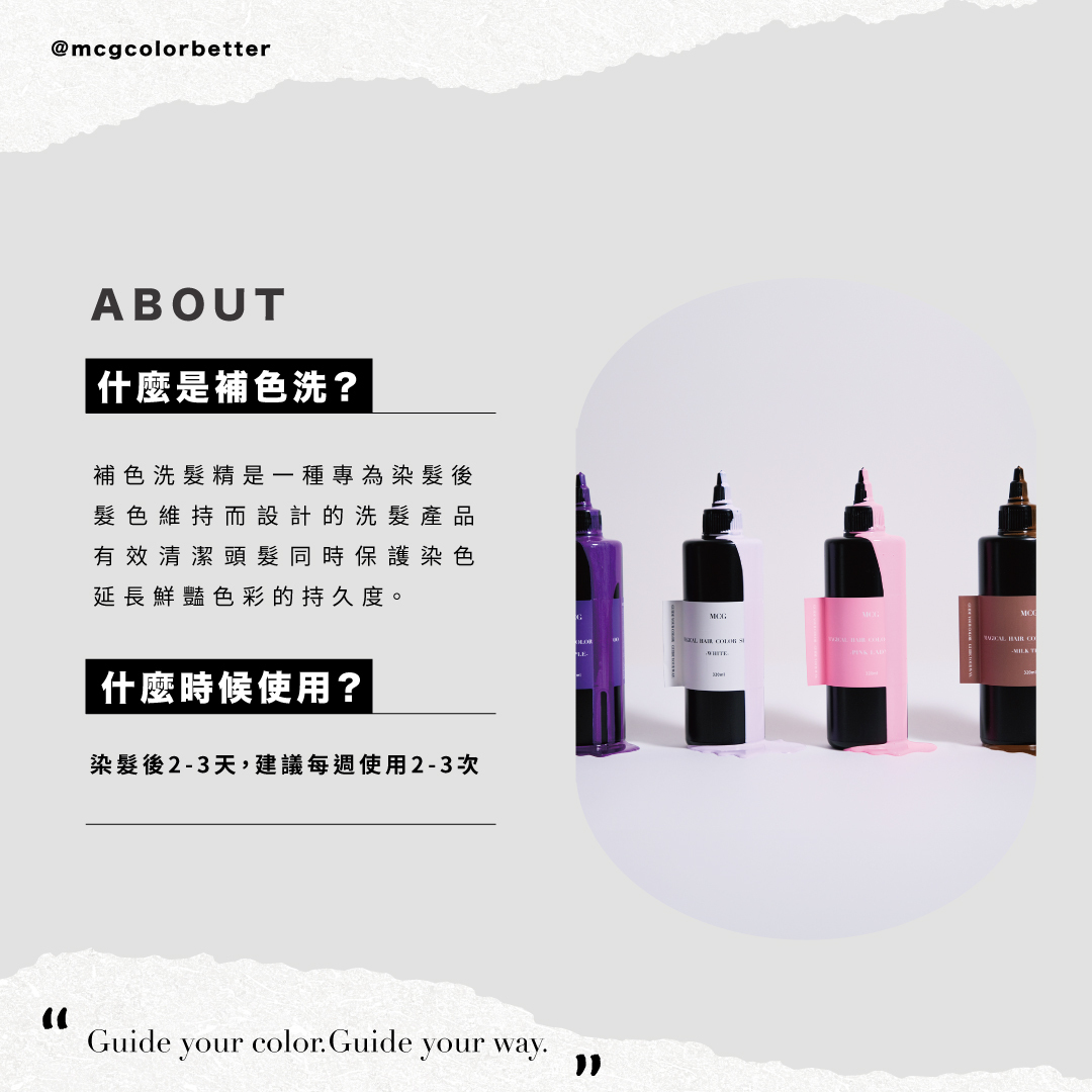 推薦一款MCG彩色精靈護色靚露補色洗髮精,含有水仙、天竺葵、伊蘭伊蘭、有機中國白茶、蘆薈、洋甘菊、祕魯龍血、瑞士蘋果賦活因子等八大天然植萃成分,洗後頭髮不乾澀外,還可以修護受損改善老化髮質,活化頭髮細胞,提升頭髮抗氧化能力,溫和弱酸性可以有效鎖住毛鱗片,避免色素流失,且使用植物增稠劑,不刺激頭皮,較不易引起敏感搔癢,除了護色外,更可以保養髮絲。