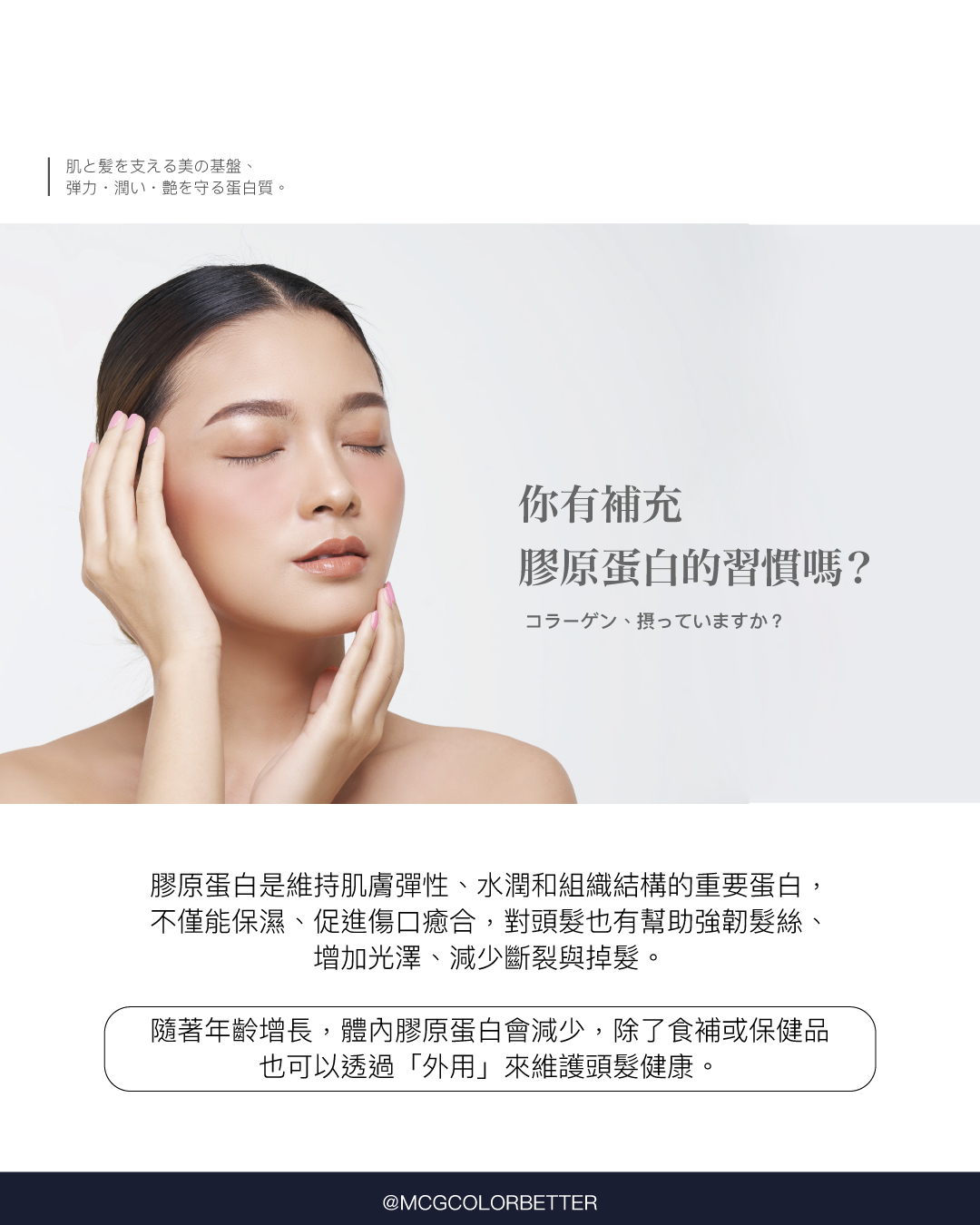 但隨著年齡增長,人體自然生成膠原蛋白的能力會漸漸下降,因此除了食補、保健品補充,若是有髮絲乾操困擾的人,還可以「外用」,維護頭髮健康!