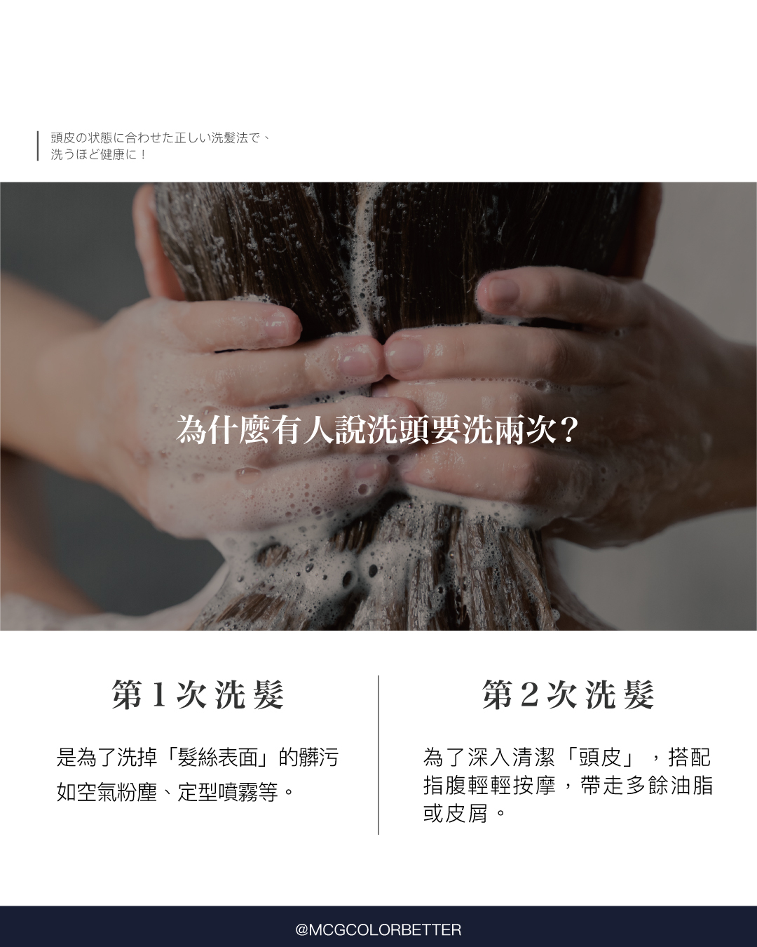 第二次是為了深入清潔「頭皮」,搭配指腹輕輕按摩,帶走多餘油脂或皮屑。