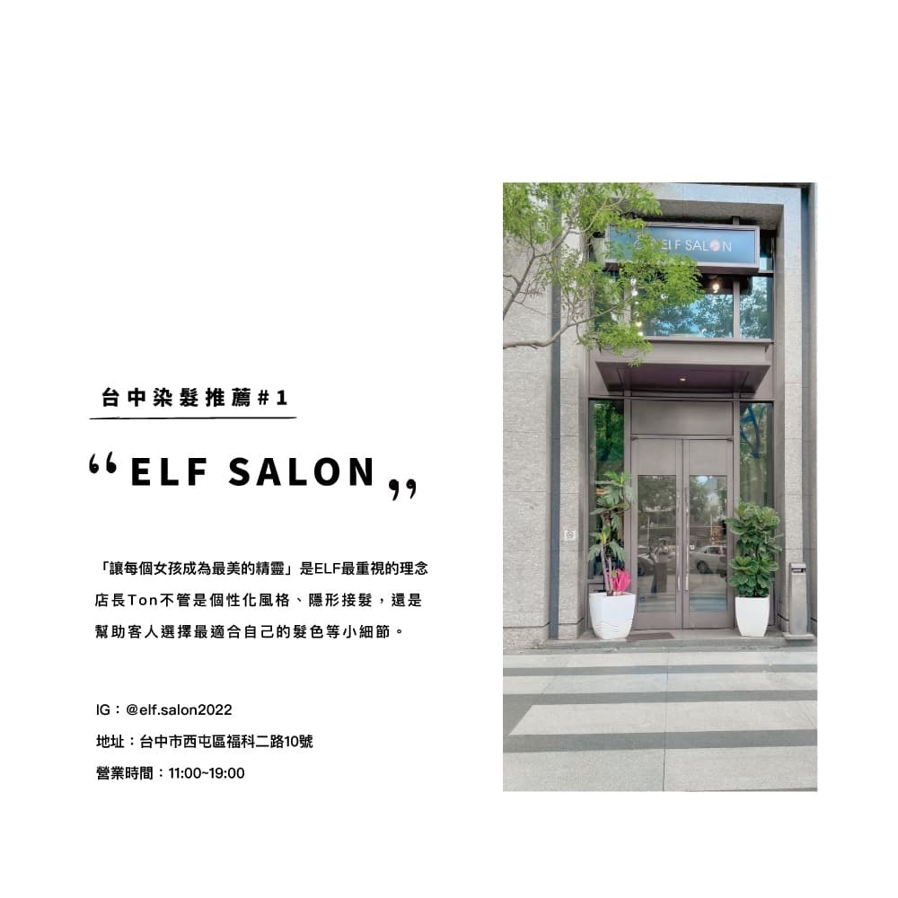 ELF SALON髮廊位在逢甲商圈及交流道間,是屬於十二期重劃區中,坐落在新大樓林立的位置。店長Ton不管是個性化風格、隱形接髮,還是幫助客人選擇最適合自己的髮色等小細節,樣樣都幫你設計到好,因為「讓每個女孩成為最美的精靈」是ELF最重視的理念。除了對客人的專業服務外,Ton也喜歡把自己打扮得有型帥氣,除了體現從事美髮的專業外,也要讓自己更喜歡自己,「每天都會跟自己說,要喜歡今天的自己」。