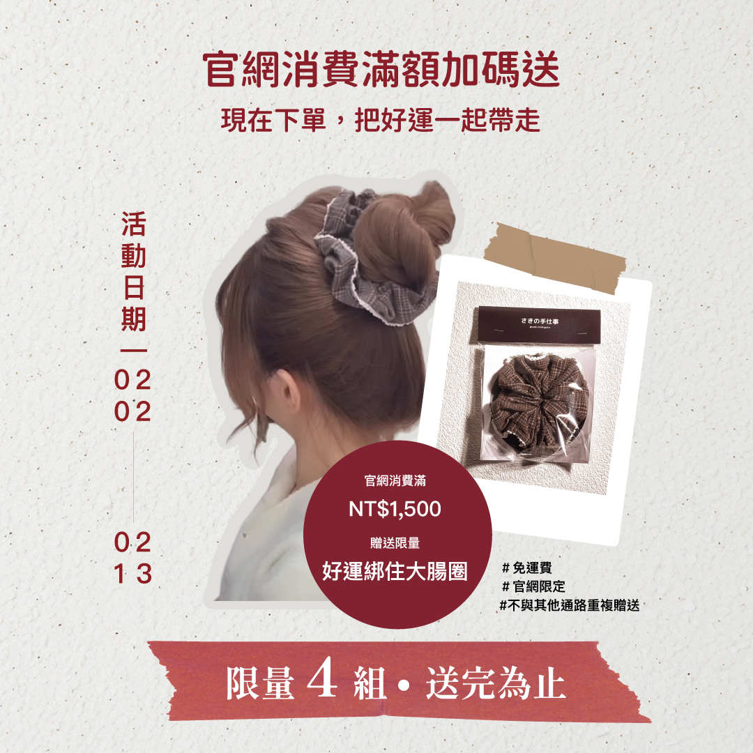 官網單筆消費滿 $1,500免運費,加送限量「好運綁住大腸圈」