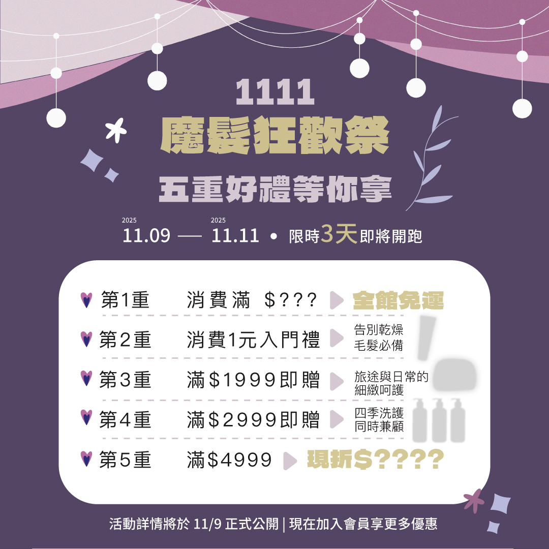 【活動專區】雙11魔髮狂歡祭・五重好禮等你拿