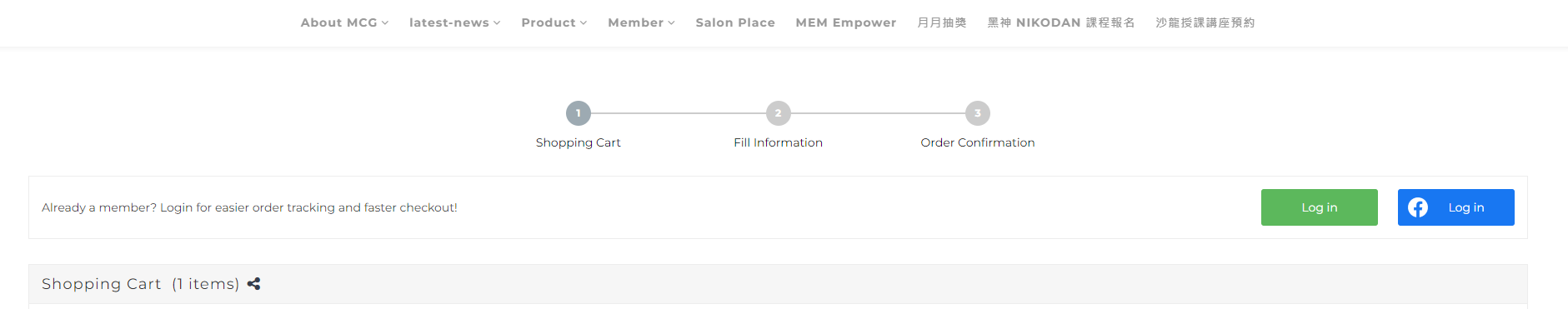※Log in/Register: Enter your mobile number with country code and set a password, or log in using your Facebook or Line account to start checkout. Click the green button on the left to register an account or log in with Line; existing members can directly click the blue button on the right to log in.