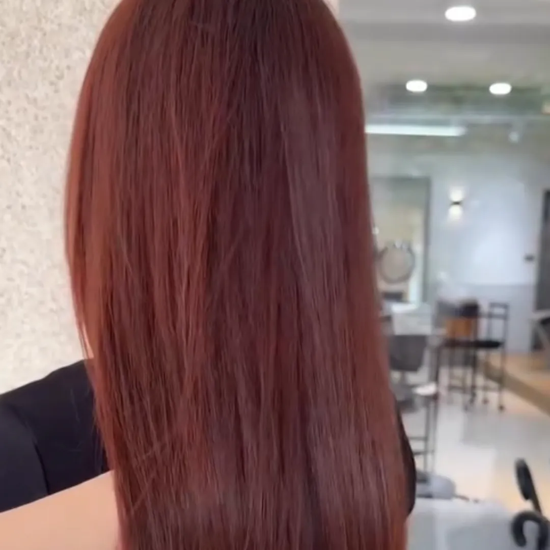 With traditional dyeing techniques, red shades typically fade into orangey-red or copper tones within 3–5 weeks—especially on hair with a yellow base. In contrast, misty dyeing allows reds to fade into soft pink-brown or milk-tea pink hues, making it a great option for those who dislike strong yellow tones after fading.