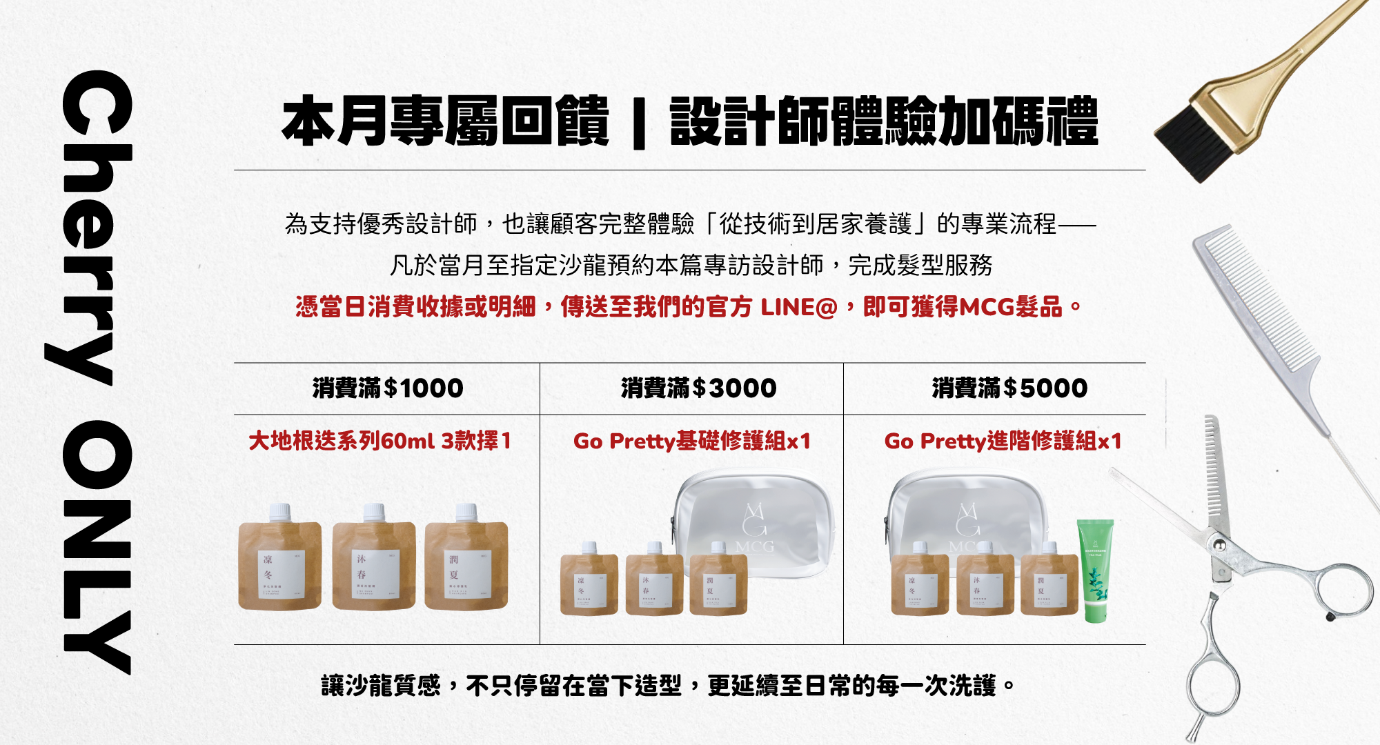 When asked about her most fulfilling moments, she says, “It’s when I fix hair that’s been damaged elsewhere—like over-processed perms or failed dyes. If other stylists are afraid to touch it, I’ll take it on and help the client recover their hair. That sense of challenge and appreciation is incredibly powerful.” Cherry’s basic haircut starts at $800, regular coloring from $2,500, and standard perms from $3,000. Book a bath dye service with Cherry and enjoy one free color-depositing shampoo session within a month—so your color lasts longer and stays vibrant. Click below for Cherry’s stylist info and book your appointment now!