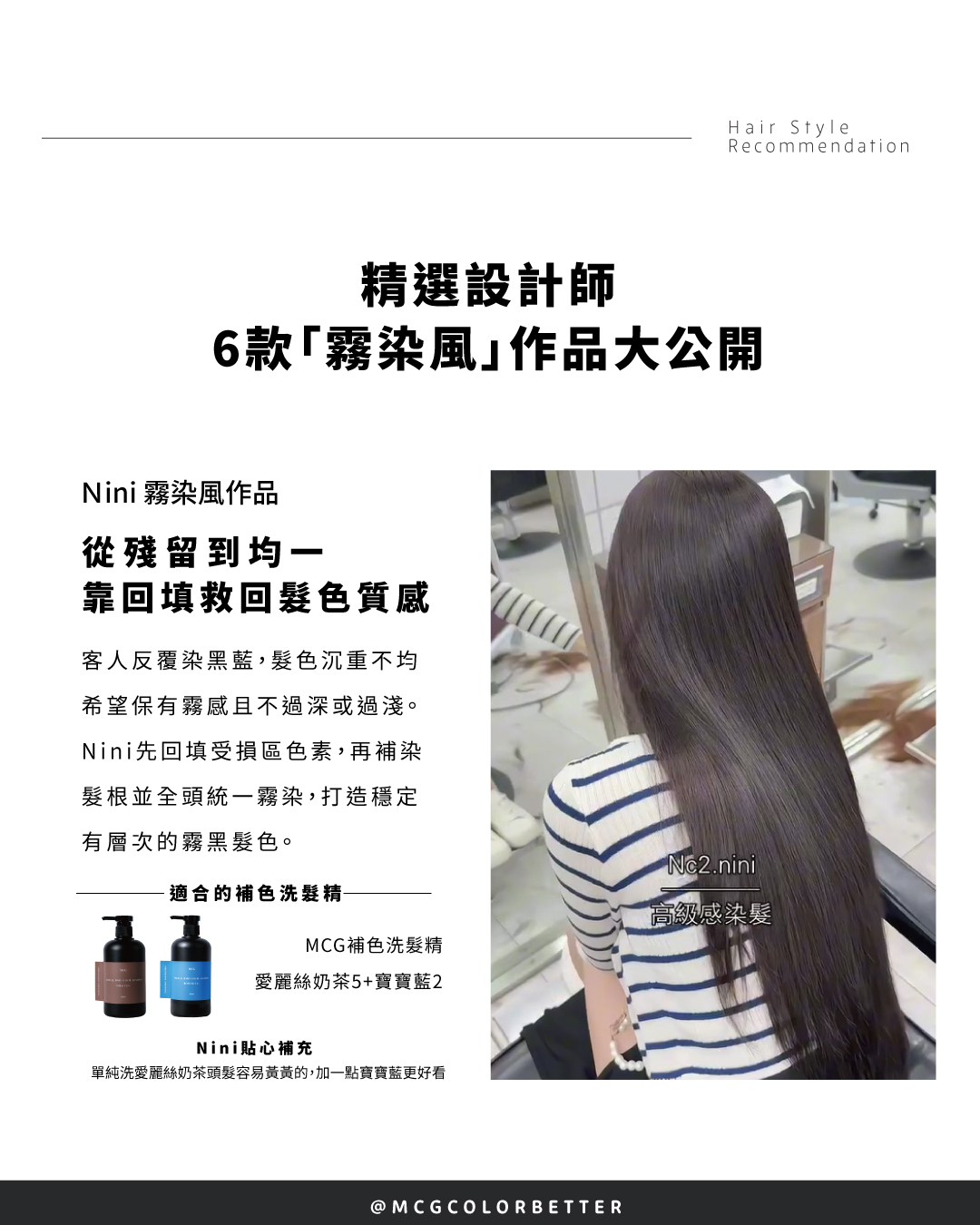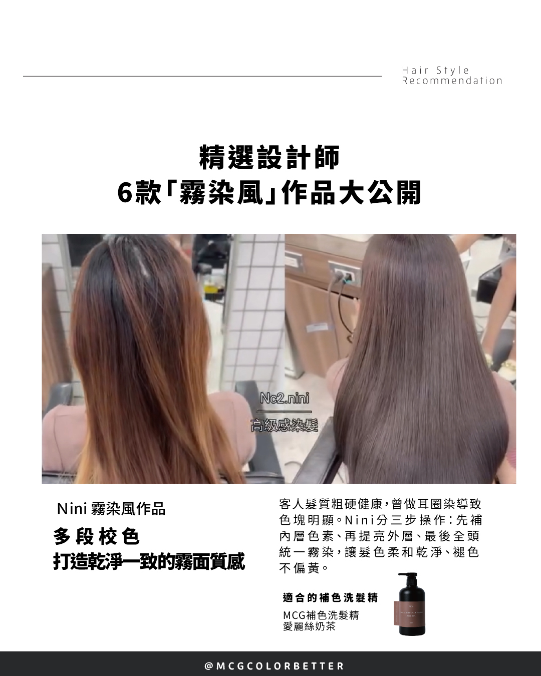 近年來強調質感與通透感的「霧染風」成為許多女生染髮的首選,尤其對不想漂髮、又渴望提升膚色明亮度的人來說,霧染風不僅能修飾五官,更能在不傷髮質的情況下打造霧感高級色。本次邀請 Nc2 Hair Salon 設計師 Nini,實際分享 6 款不同髮況的操作案例,讓你找到屬於自己的不用漂也能美的質感髮色。