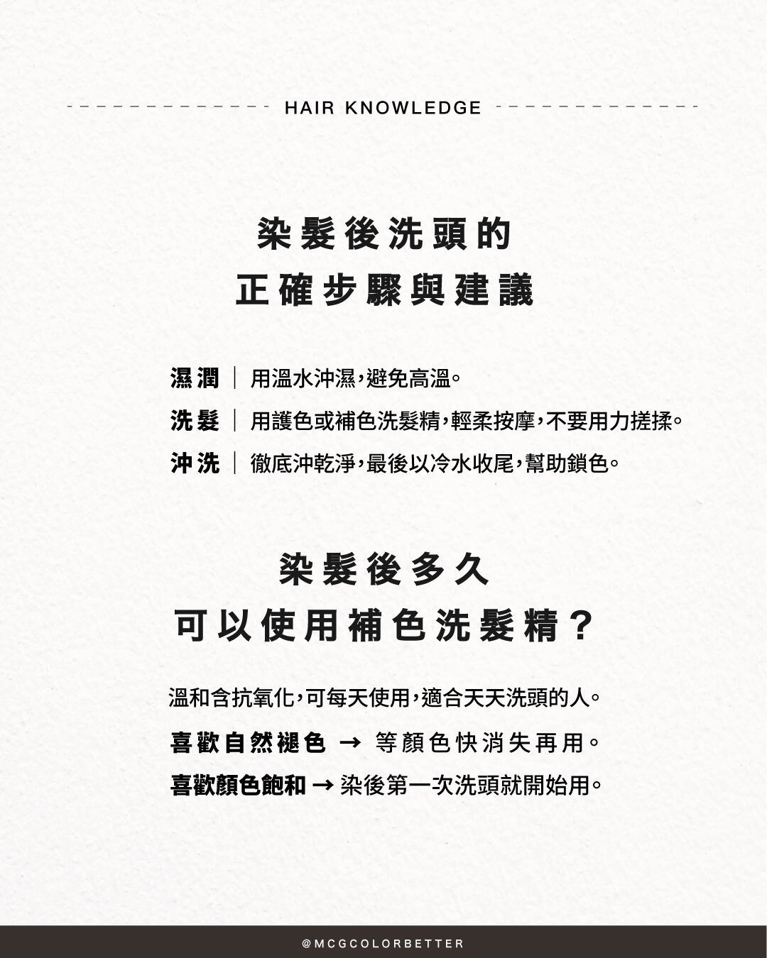 剛染完頭髮後可以 2~3 天後再洗頭,就開始可以補色洗髮精。使用每週可以使用 2~3 次補色洗髮精。