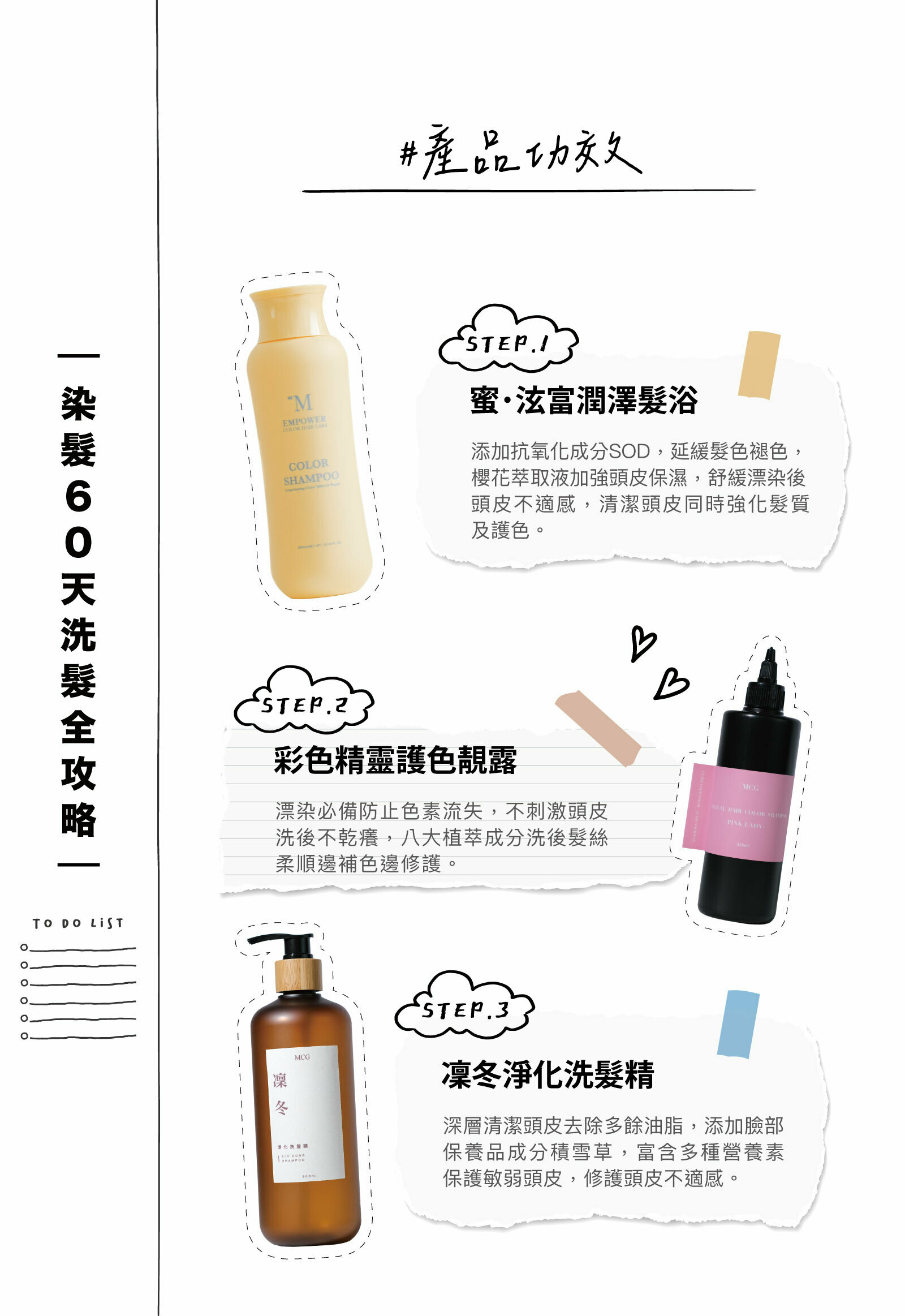 ◆4 大特色-不沾手、不卡色、好洗均勻、洗後柔順