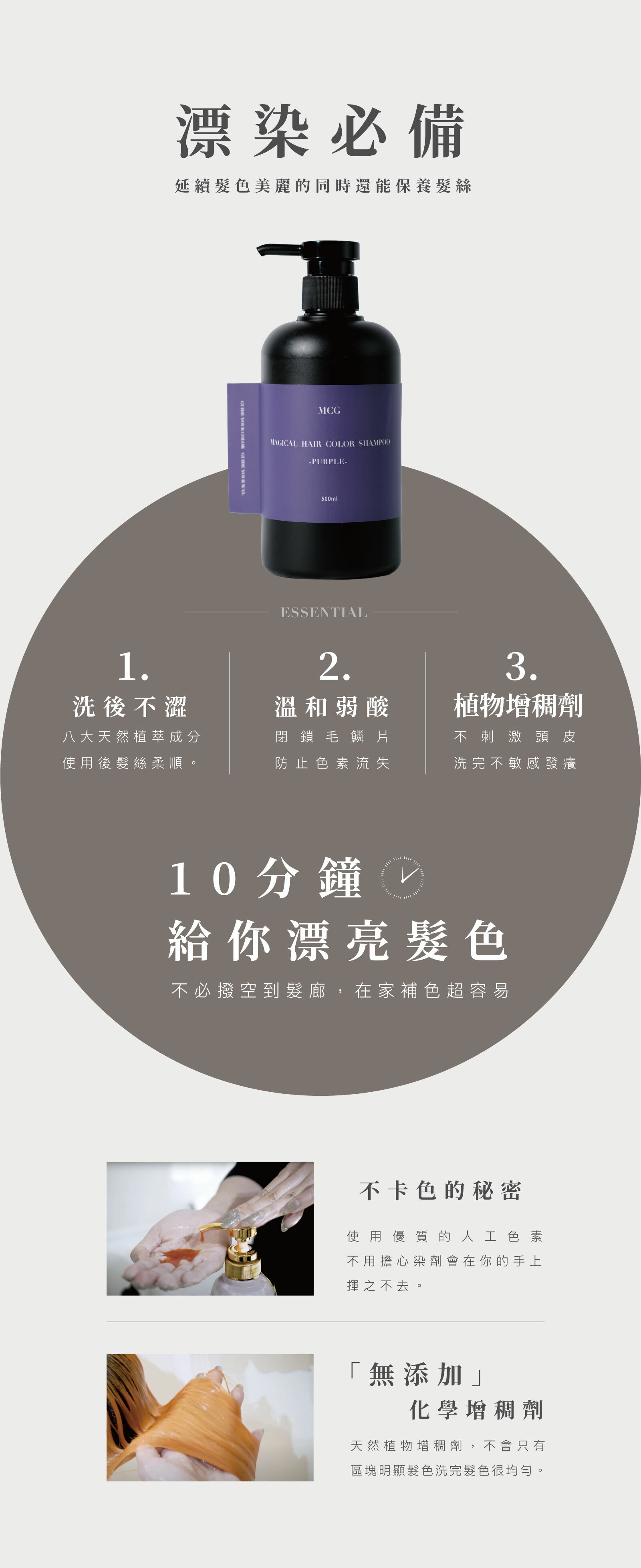 ◆冷紫色、薰衣草紫適用,有效鎖住髮色,就像一般洗髮精一樣,可以清潔髮絲,洗完髮絲柔順不乾澀,補色之外還能照顧你的髮絲。
