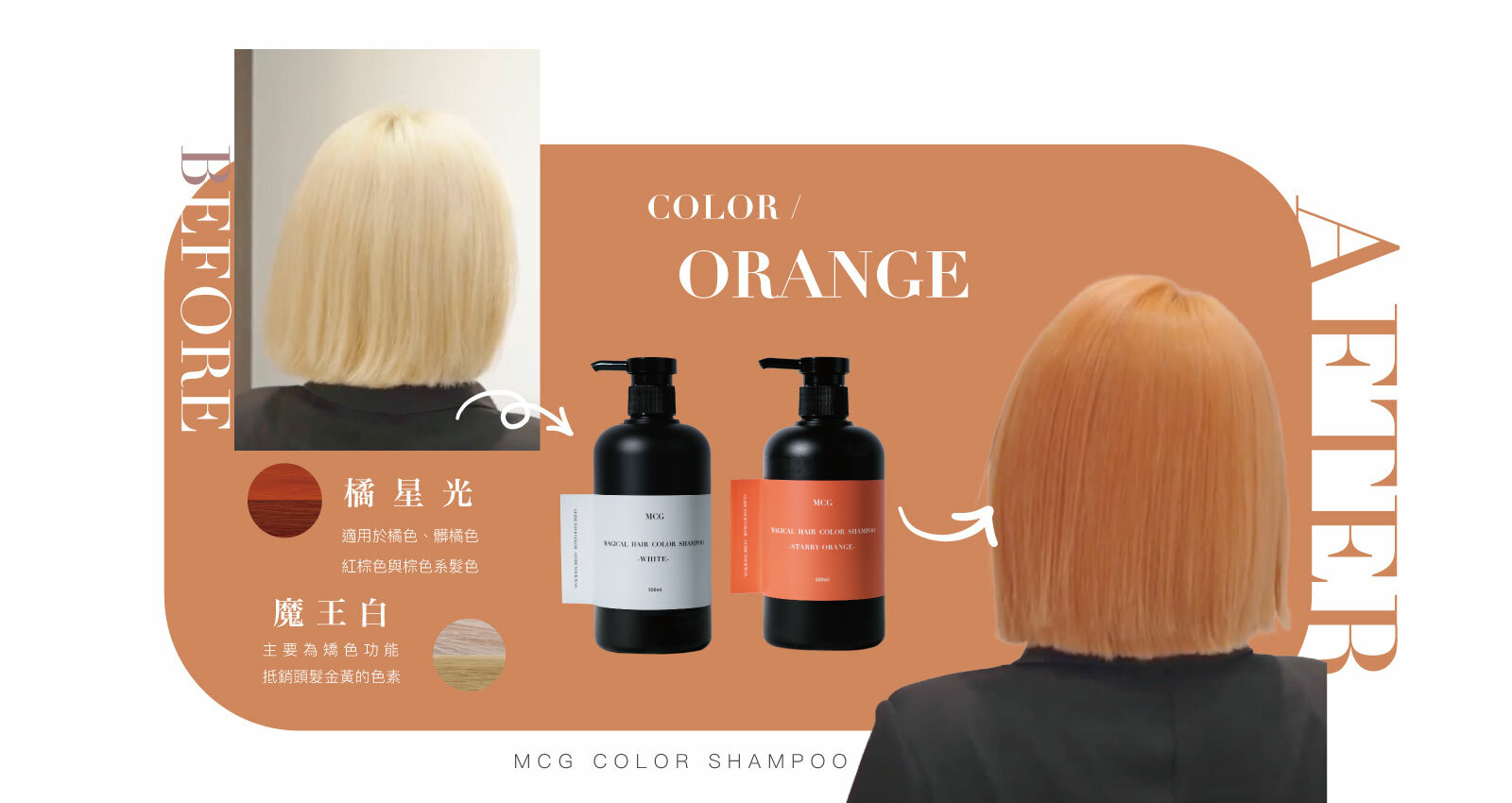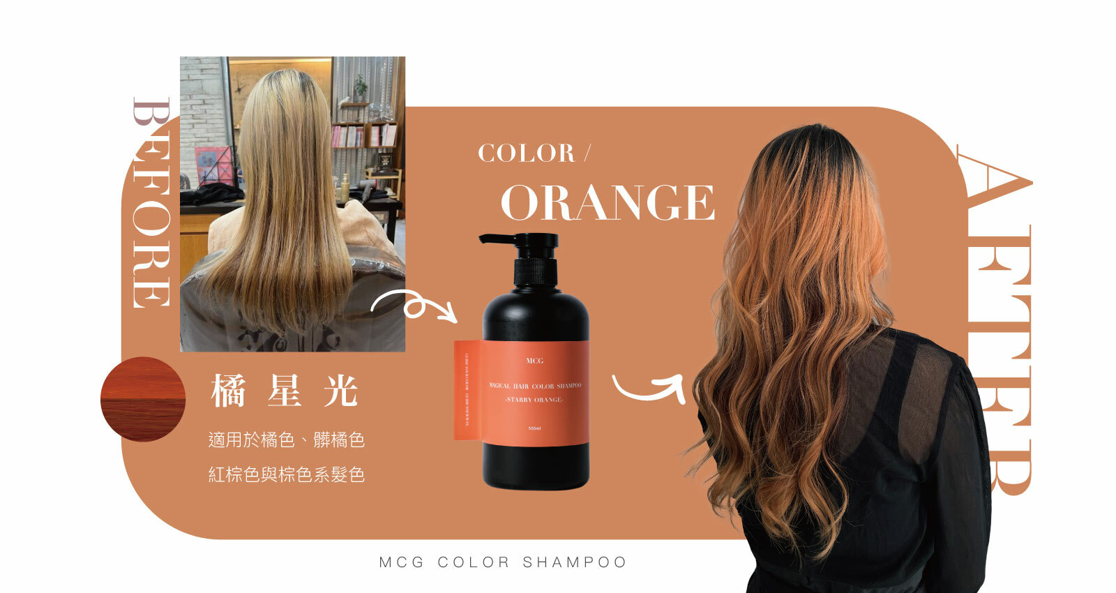 ◆橘色系適用,有效鎖住髮色。就像一般洗髮精一樣,可以清潔髮絲,洗完髮絲柔順不乾澀,補色之外還能照顧你的髮絲。