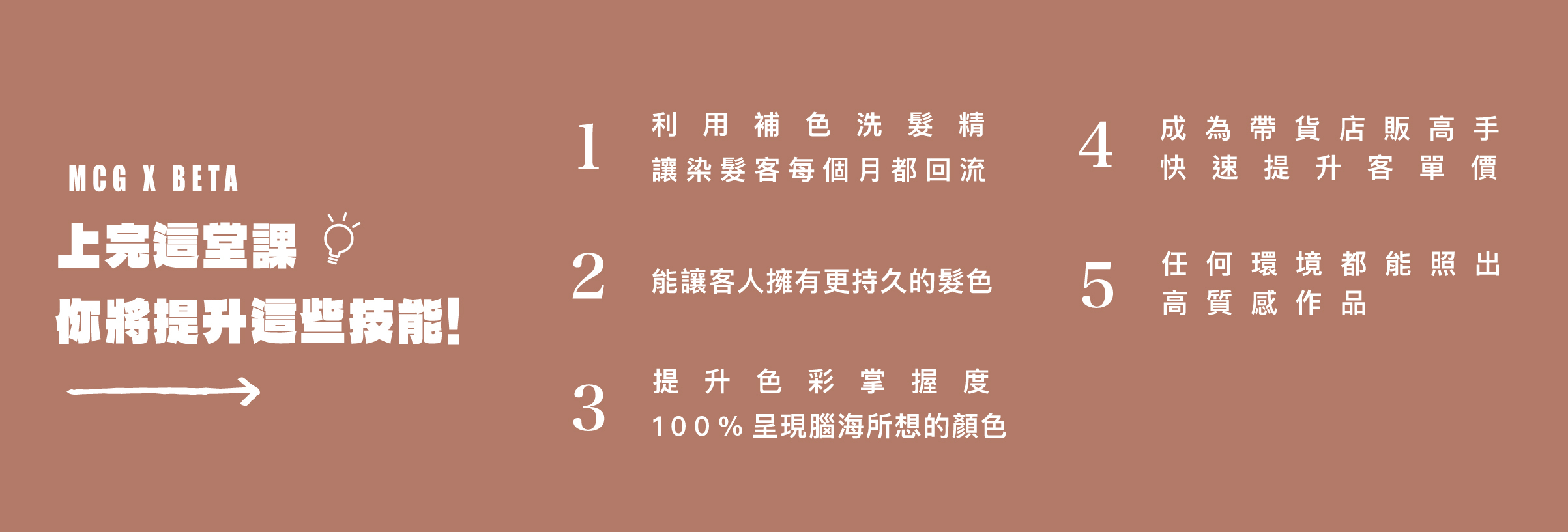 9. 因課程皆為智慧財產權,若未經MCG米璽聚許可,上課時請勿錄影和錄音;可供學員拍照留影。