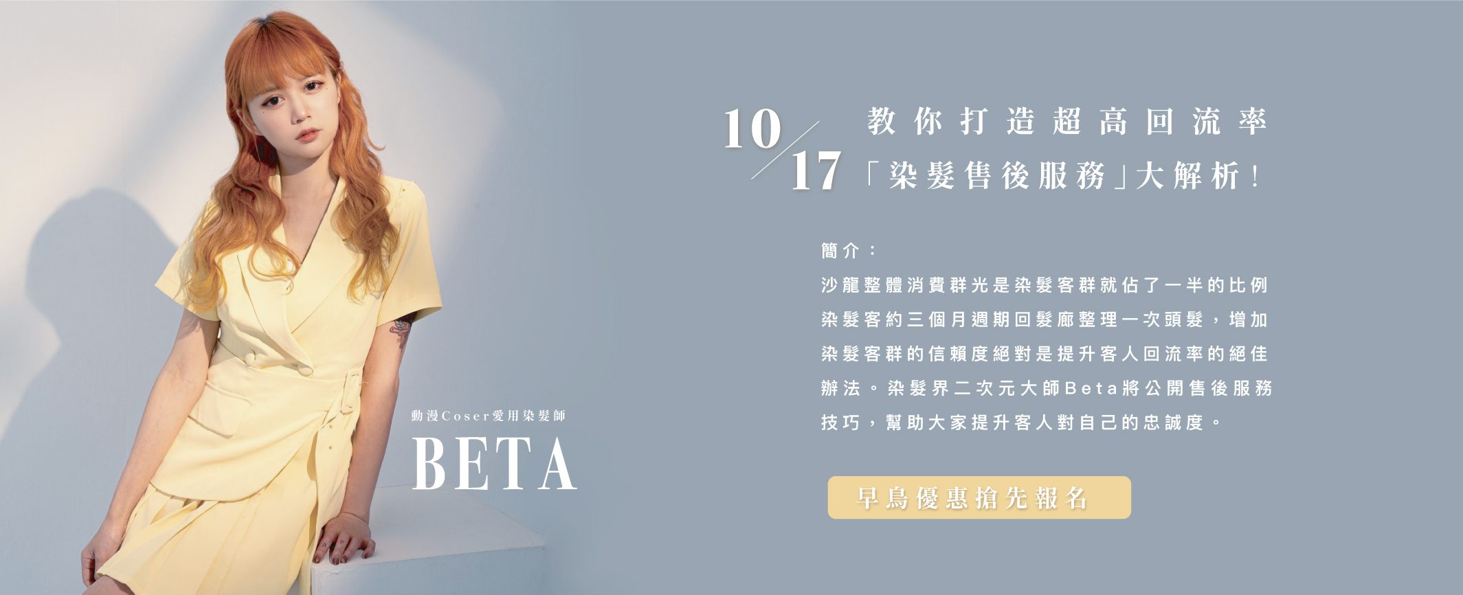染髮界二次元大師Beta將公開售後服務技巧,幫助大家提升客人對自己的忠誠度!