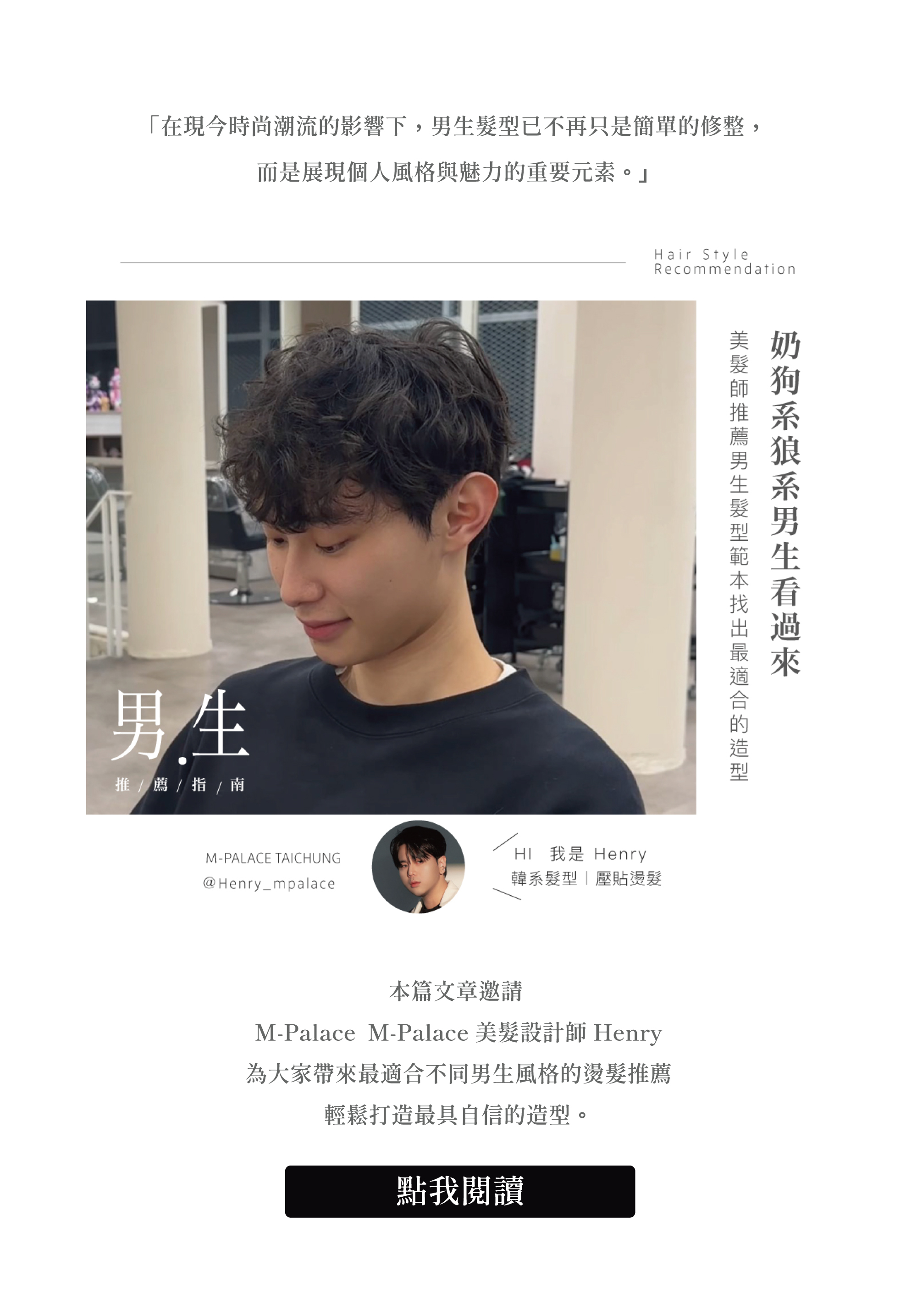 或MEM蜜.泫富潤澤髮油120ml,此商品將附贈【男生全頭造型髮燙服務乙次】(限下巴上短髮髮型),