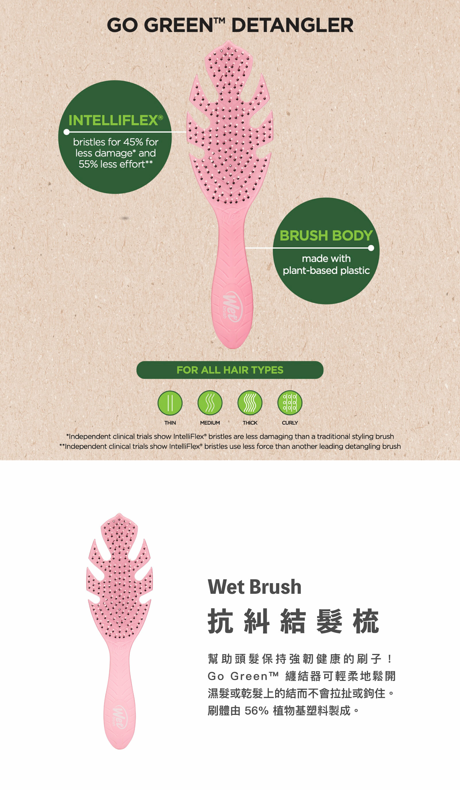 ◆幫助頭髮保持強韌健康的刷子,輕柔鬆開濕髮或乾髮上的打結